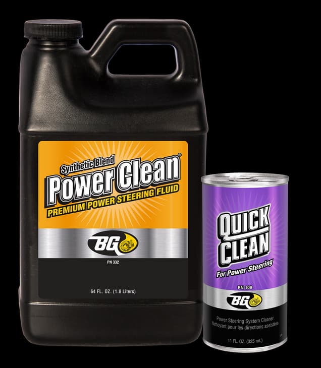 The BG Power Steering Service Center introduces BG Quick Clean for Power Steering into the system. The specialized cleaner removes deposits and other debris and suspends the contaminants in the old fluid. The old fluid is then removed and replaced with new, premium BG Power Clean® or BG Universal Power Steering Fluid.